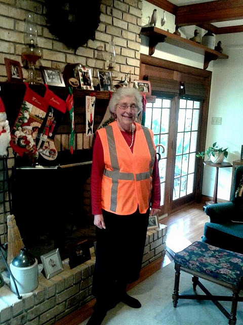 Above you see me modeling one of my Christmas presents, an orange reflector vest. The purpose of the vest is to keep me from being run down by a car when I take my nightly walk.